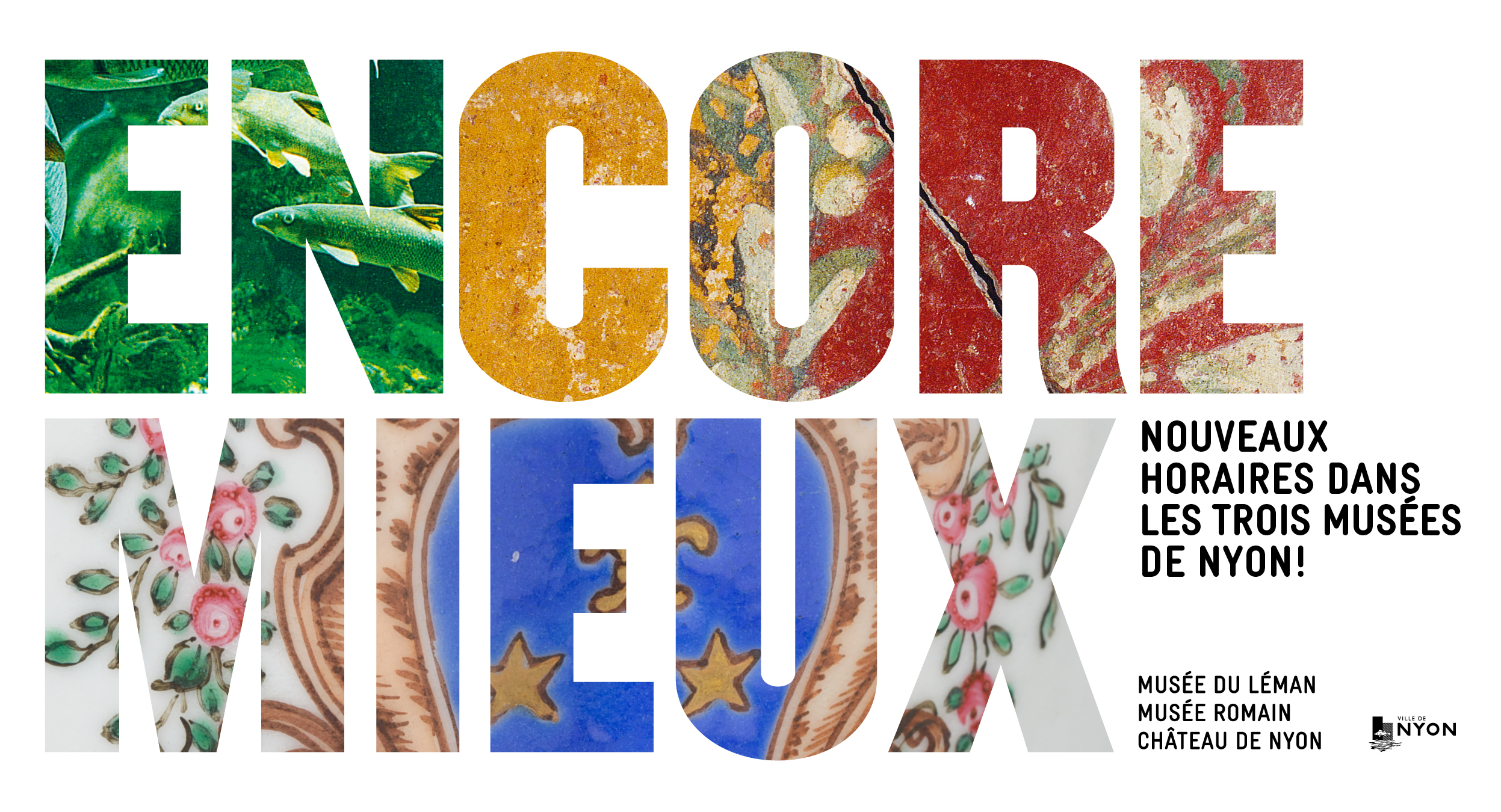 Le Château de Nyon, le Musée du Léman et le Musée romain adoptent de nouveaux horaires étendus: ils seront désormais ouverts du mardi au dimanche, de 10h à 18h sans interruption, tout au long de l’année.