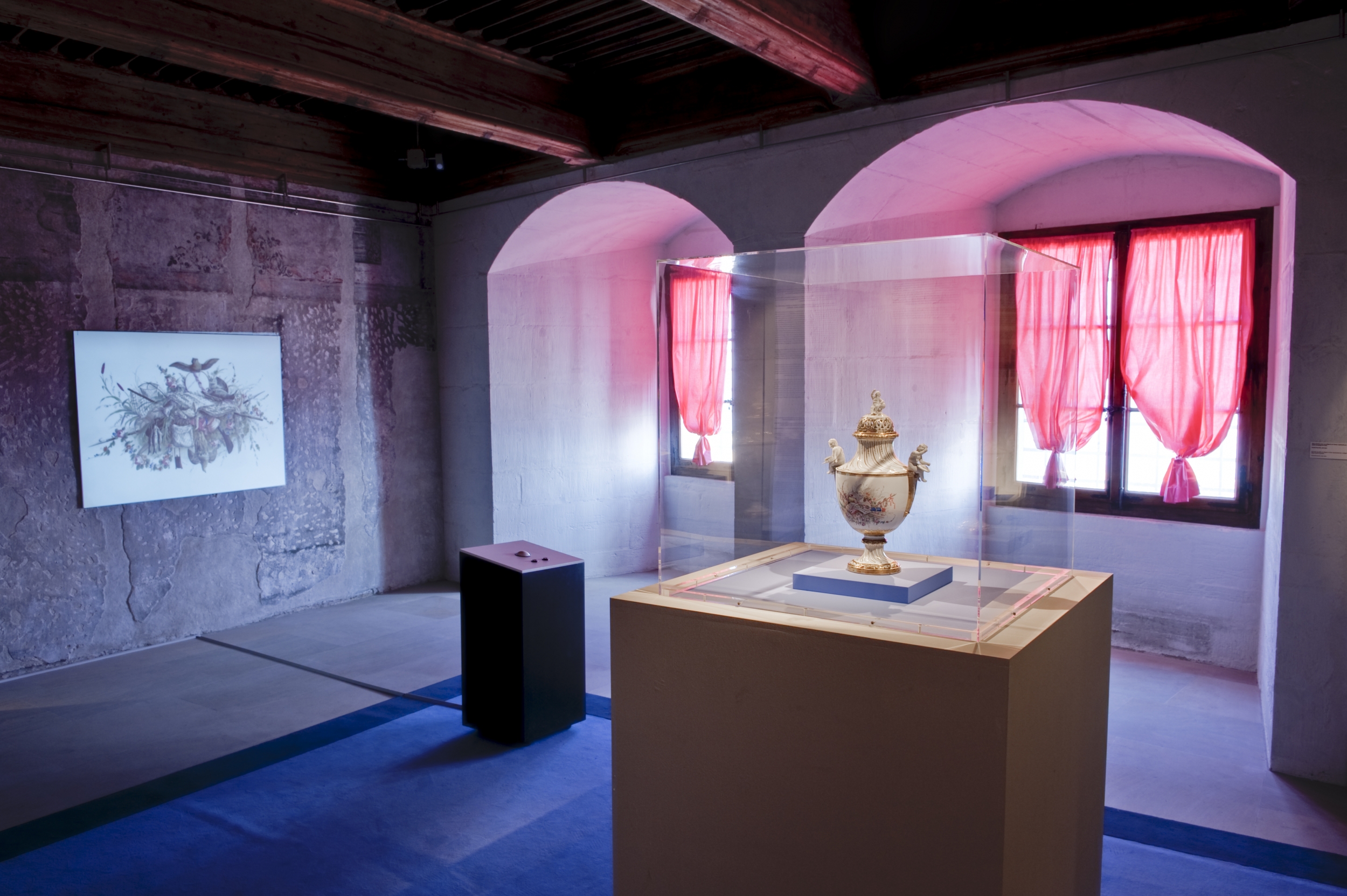 Trois ensembles importants de porcelaines sont apparus depuis. Tout d’abord une partie de la très belle collection de M. de Cérenville promise en 1997 par sa fille, Mme Anne Bischoff, et qui est entrée au Musée au début de 2007. C’est donc cet ensemble si généreusement offert à la Ville de Nyon qui est présenté ici, pendant cette exposition. En 2007 et 2008, plusieurs tasses au décor particulier, voire unique, ayant appartenu à M. Golay ont pu être acquises par le Musée avec le soutien de mécènes. Enfin, par deux fois, en mars et décembre 2008, une très grande partie de l’ancienne collection de M. Salmanowitz fut proposée aux enchères à Genève. Grâce à un effort important de la Ville de Nyon, au soutien des Amis des Musées de Nyon et l’aide de généreux mécènes, des pièces de grande qualité purent être acquises, notamment le grand vase aux amours et trophées. Et, fait curieux, la plupart de ces pièces avaient déjà été exposées en ces lieux mêmes en 1947. Certaines d’entre elles ne furent jamais remontrées au public depuis. Cette nouvelle exposition a donc lieu au moment même où les descendants de certains des collectionneurs de 1947 se séparent de ces ensembles.