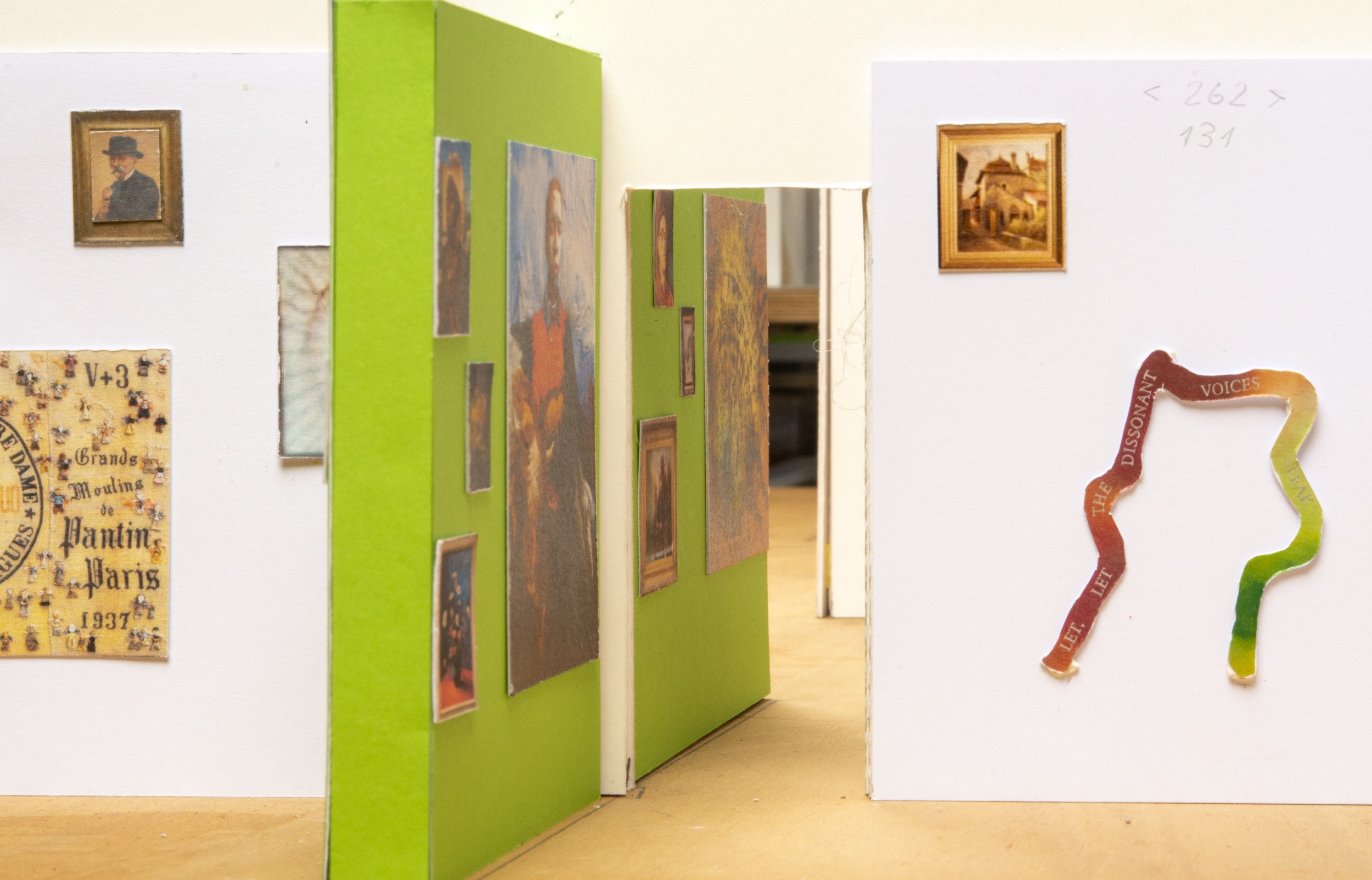 L’artiste nyonnais Pierre Schwerzmann propose des dialogues visuels, parfois houleux, humoristiques ou conceptuels, entre les tableaux de l’exposition.