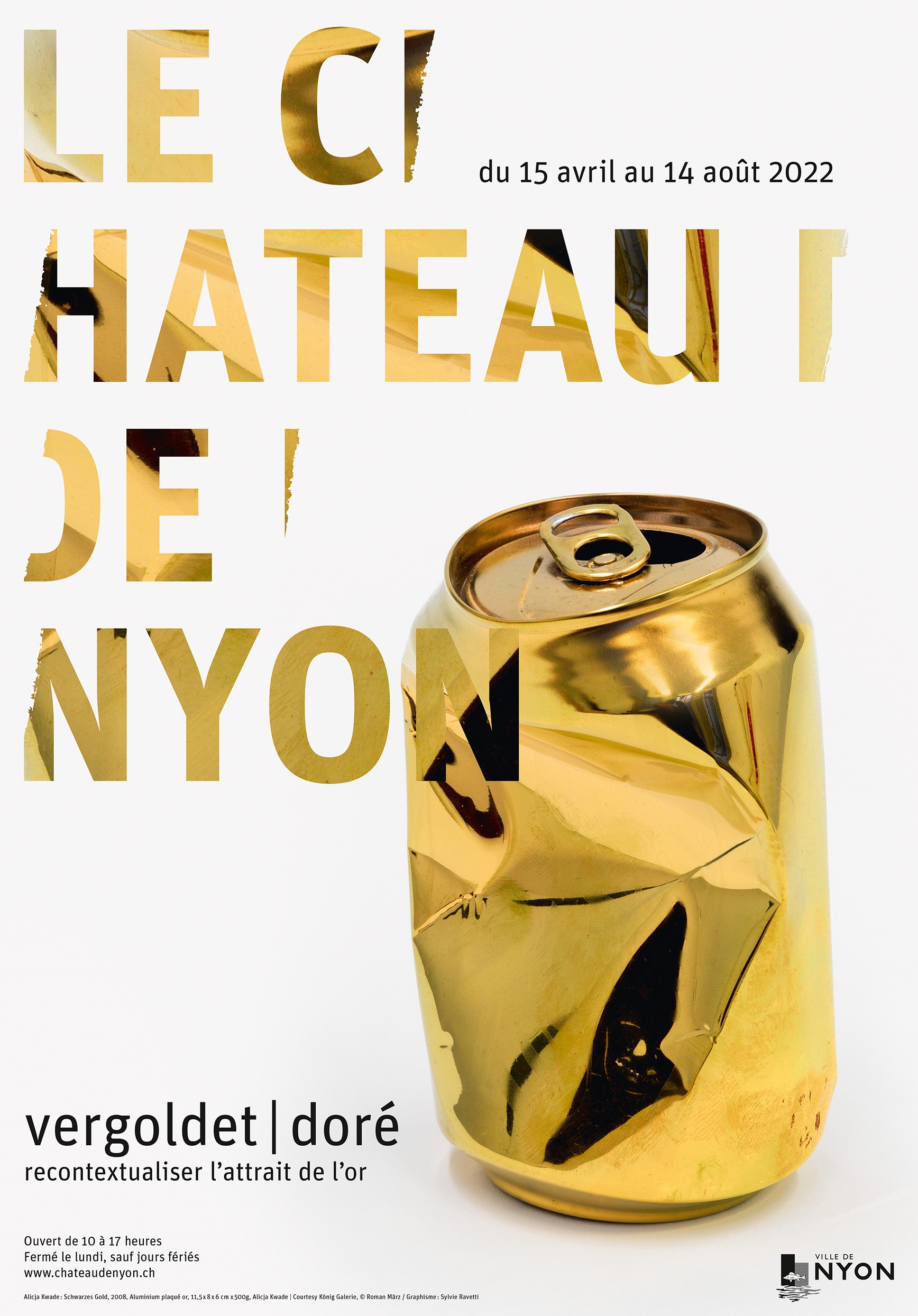 Des expositions où art contemporain et art ancien se mêlaient ont souvent été organisées au Château de Nyon, permettant à des publics divers de découvrir des facettes de l’art auxquelles ils n’auraient pas nécessairement porté attention. Cette exposition sur le thème de l’or dans l’art contemporain au rez-de-chaussée du château répond ainsi à la porcelaine du XVIIIe siècle produite à Nyon exposée, elle, au premier étage du même bâtiment avec une pièce de circonstance, puisqu’elle est ornée, en or, du monogramme de son propriétaire de l’époque: OR.